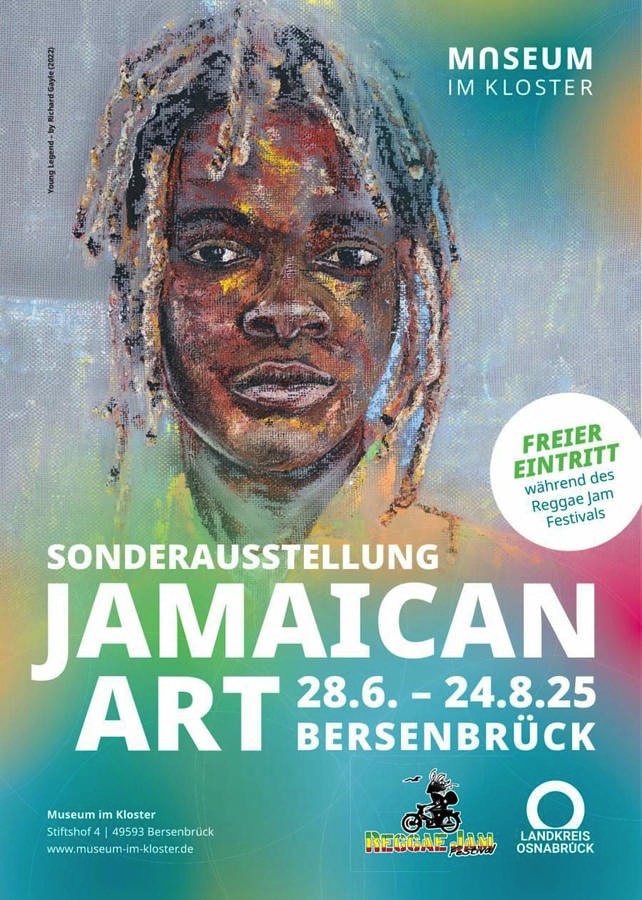 Bersenbrück. The new special exhibition “Jamaican Art” has been ceremoniously opened in the district's own museum in the Bersenbrück monastery. More than 30 established and up-and-coming artists from the 20th and 21st centuries are presented with works and biographies. This is the fifth time that the museum has aligned its content with the annual Reggae Jam Festival in the monastery garden. After several exhibitions with a musical focus, such as “Marleyville” in 2022 and “Dub Museum” in 2023, a new focus is now being placed on visual art from the island nation. The collection assembled for “Jamaican Art” is impressive, as it includes works by Jamaican artists of international renown such as Edna Manley, Albert Huie and David Pottinger. Even before independence from Great Britain, their works had an identity-forming effect on the Jamaican population, which was on the verge of entering the politically extremely turbulent new post-colonial era. The exhibition was put together by Frankfurt Jamaica expert and art collector Karl-Olaf Kaiser together with museum director Katharina Pfaff. They were provided with works of art by numerous lenders from Germany, France and Jamaica. They also compiled a catalog that summarizes the main contents. During the opening ceremony in the museum garden, district councillor Matthias Selle thanked everyone who had contributed to the exhibition. “It is a special opportunity for our museum to be able to present art of such standing,” he emphasized. After his welcoming speech, Jamaican-British art collector Theresa Roberts, who was appointed Special Envoy in 2023 by Jamaican Prime Minister Andrew Holness due to her great services to Jamaican art and culture, spoke. She also expressed her gratitude for the extraordinary opportunity to give Jamaican art a stage on the European continent. Curator Karl-Olaf Kaiser then reported on the creation of the exhibition, before Munich art historian Claudia Hucke gave an expert classification of the exhibition in her opening speech. The exhibition opening was moderated by Katharina Pfaff. There was an opportunity for further discussion in the exhibition, while DJ Jah T provided a Caribbean atmosphere in the museum garden. Several of the exhibited artists from Germany, other European countries and Jamaica had traveled to the event and mingled with the interested local audience. The Kreisheimatbund Bersenbrück, which runs the museum in cooperation with the district's cultural office, took care of the catering for the guests. The exhibition “Jamaican Art” can be seen at the Museum im Kloster Bersenbrück until August 24. Admission to the museum is free on the first Saturday of every month, as well as during the Reggae Jam Festival from August 1 to 3.